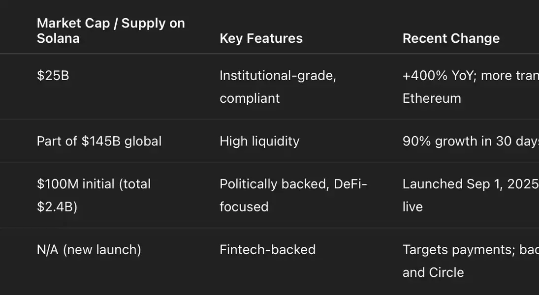 The Solana stablecoin landscape is characterized by the dominance of established players and the emergence of innovative new entrants, each contributing to the market's robust growth and diversification. USDC from Circle maintains a leading position, while USDT from Tether continues to hold a significant presence. The recent introduction of new stablecoins like USD1 and FIUSD indicates a strategic expansion of the market, catering to diverse needs and attracting new segments of users, including those with political and institutional affiliations.
